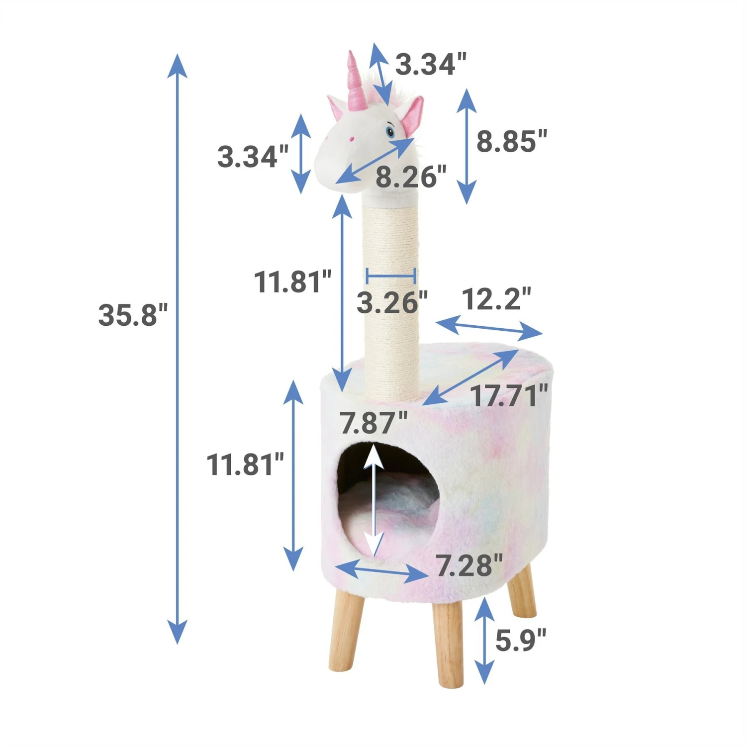 - Includes all the kitty amenities—a scratching post, a private condo and a perch at the top.