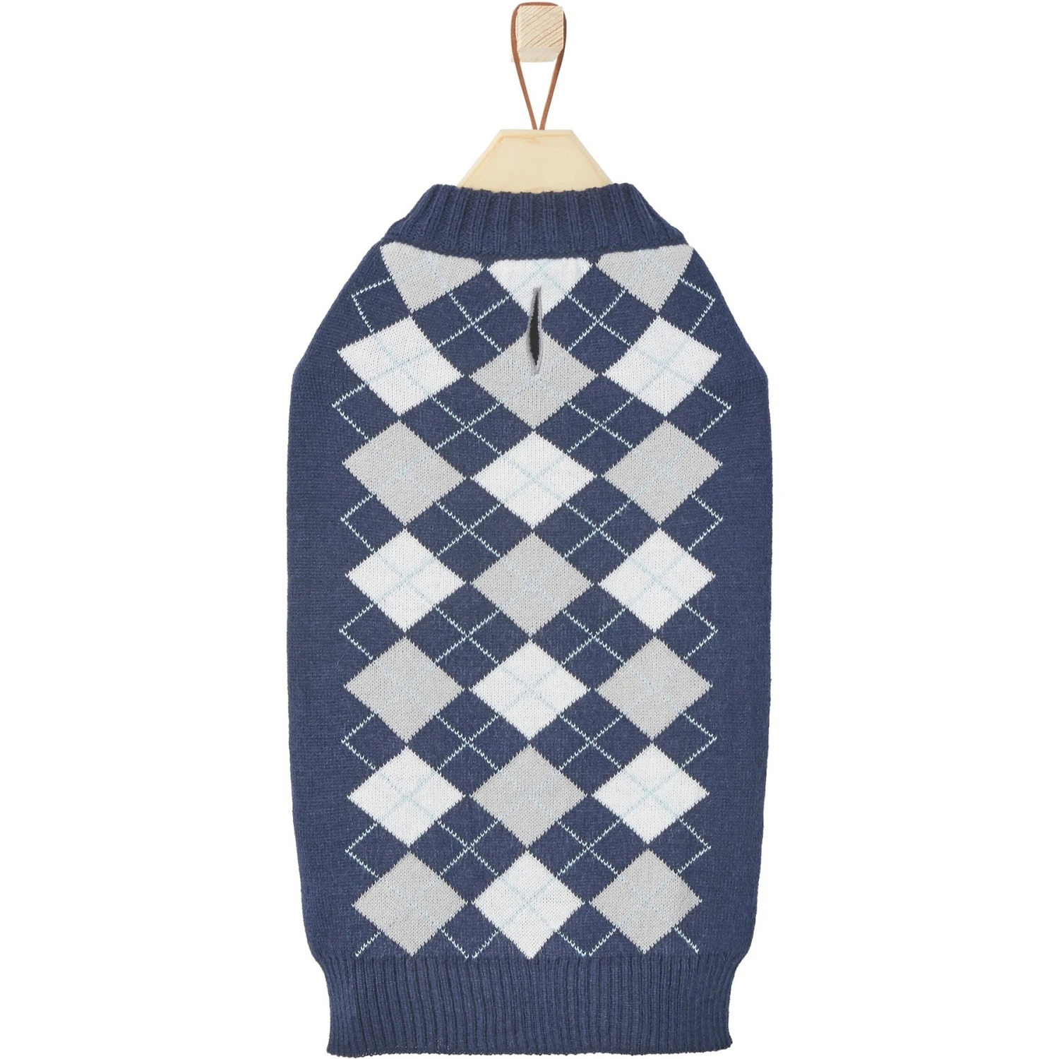 - Classic three-color argyle print adds a touch of style to your pet’s winter wardrobe.