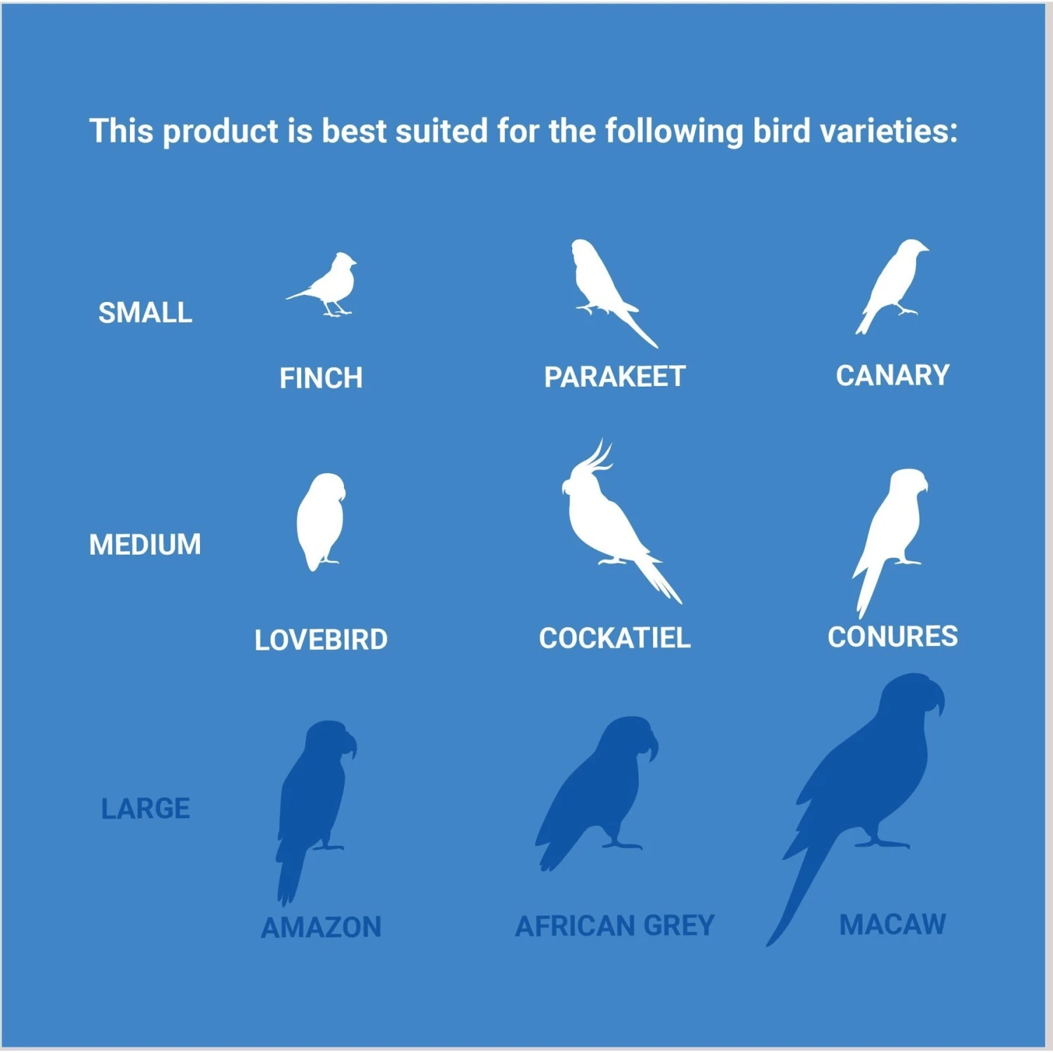 - Just place it on their cage or on a flat surface, then watch them have the time of their life. Best suited for Conures, Cockatiels and Lovebirds.